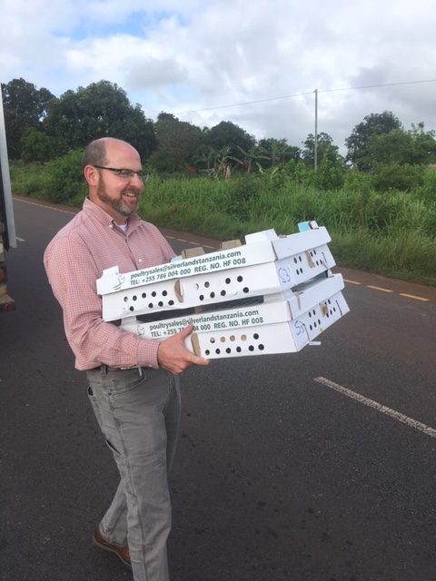 El personal de WPF tuvo la oportunidad de visitar a productores avícolas en la región de Morogoro, en Tanzania (196 km al oeste de Dar es Salaam). El equipo visitó varias aldeas donde las unidades madre (también conocidas como unidades de cría) criaban aves Sasso hasta los 28 días y luego las vendían a los agricultores y aldeas vecinas. La Sasso es una ave de doble propósito que crece más rápido y produce más huevos que las razas locales. La Sasso y las razas locales tienen el mismo plumaje, lo que hace que la Sasso sea más aceptable para los granjeros locales. El equipo tuvo la oportunidad de entregar algunos pollitos recién nacidos, ya que nos encontramos con un camión de reparto con problemas mecánicos. Cargamos las aves en varios de nuestros vehículos y las entregamos en un centro de distribución. Puedes ver fotos de esto en la galería de abajo.